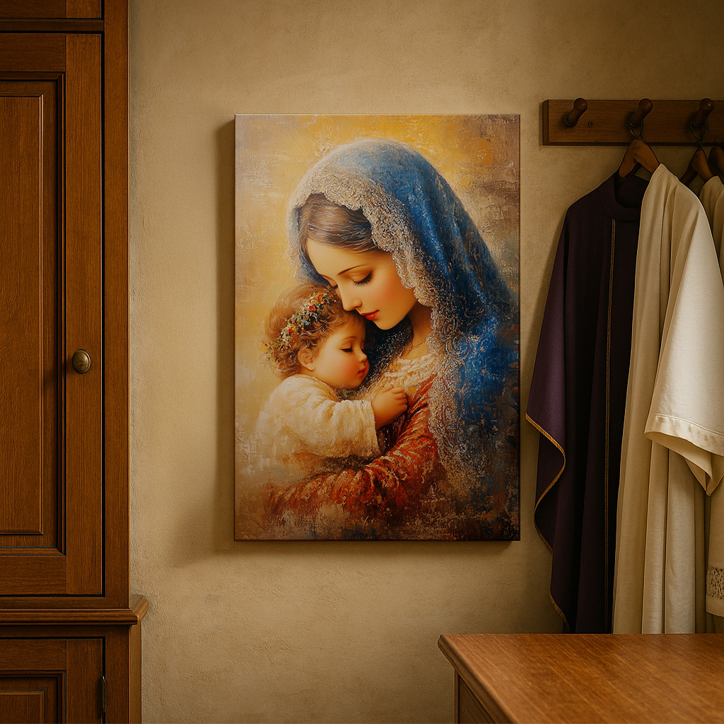 Zamów obraz „Maryja z Dzieciątkiem" i pozwól, by Jej miłość i troska rozświetlały Twoje serce i dom.