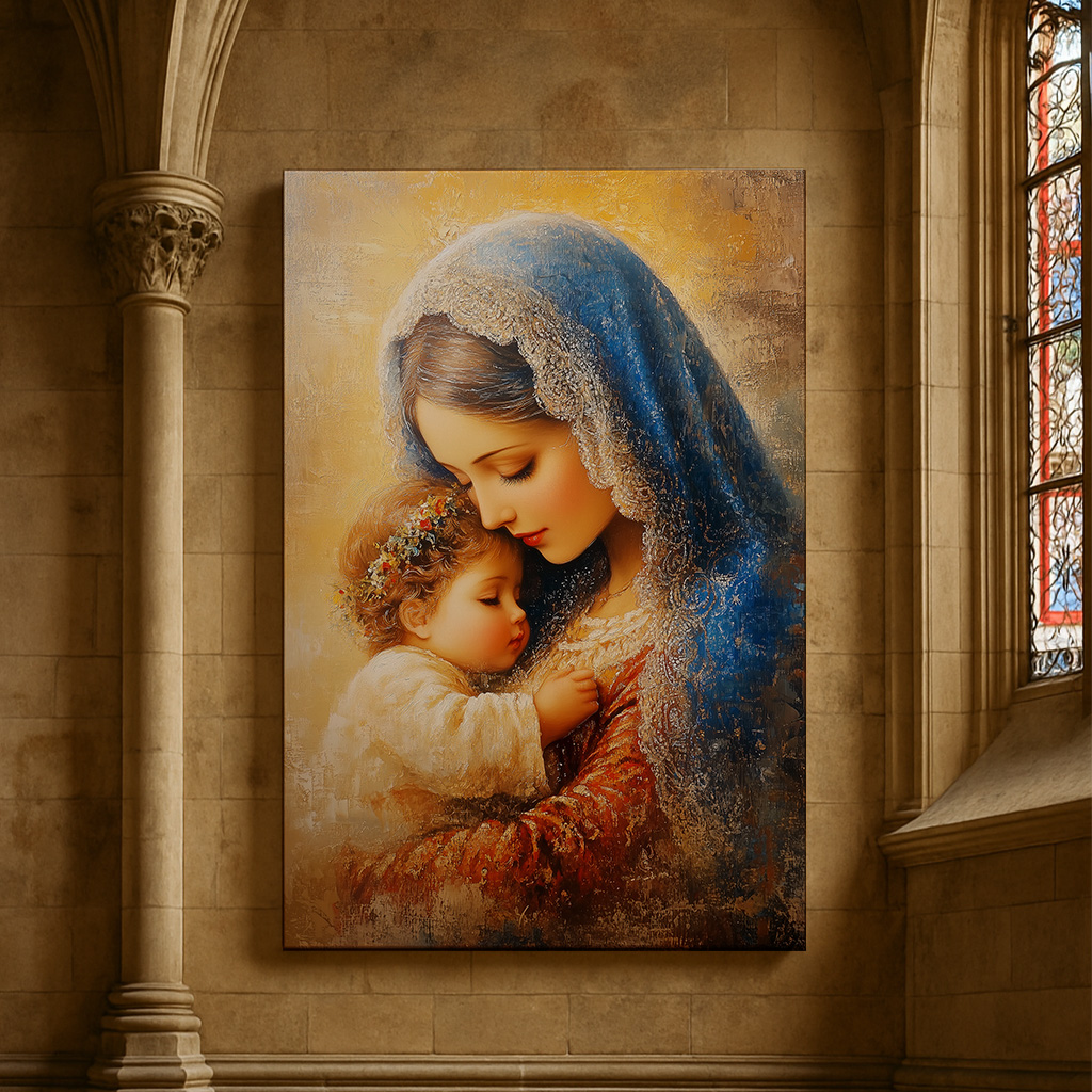 Zamów obraz „Maryja z Dzieciątkiem" i pozwól, by Jej miłość i troska rozświetlały Twoje serce i dom.